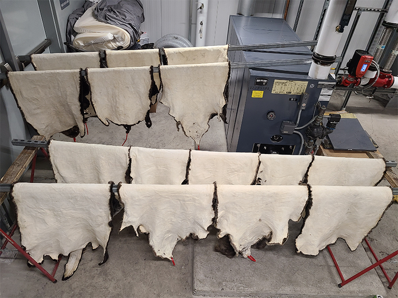 Finding an approachable reef or Rocky point to wait out of sight is usually the best option. In such a small boat, skinning immediately is the rule. This also gets this heat trapping hides ice quickly. As much as I like to stay out and enjoy a day on the water, I feel it is necessary to complete my process by days end. Once trailering the skiff, it’s time for the real work to start. I use a pressure washer to flesh each hide to remove all fat and flesh. It is the very definition of a dirty job. Once a thorough fleshing is complete, it’s on to the first salting. I use a dog grooming air dryer to blow the hair dry then coat the skin side with fine salt, and work it in by hand. After folding it lengthwise skin to skin, I roll it up and set it on a rack to let the salt draw out impurities so they can drip out below. It’s amazing how much junk can be pulled out of an otherwise clean looking animal hide. The next day, first salt is knocked out of the hide, then it’s back to the hair dryer and a second layer of salt with the hide laid out flat skin side up. After a day or two of this, the hides are hung in a room with fans blowing and a dehumidifier to control moisture. In seven to ten days, the hides have turned completely white, signaling 100% dryness. The tanning process picks up where salting leaves off, but a proper salt brings the decomposition of a hide to nearly a halt. This affords peace of mind that every effort is made to ensure a tanned hide of the highest quality. Not lost in the process is the contact of a federal tagging agent to tag and provide a certificate of date, location of kill, and sex of the animal.